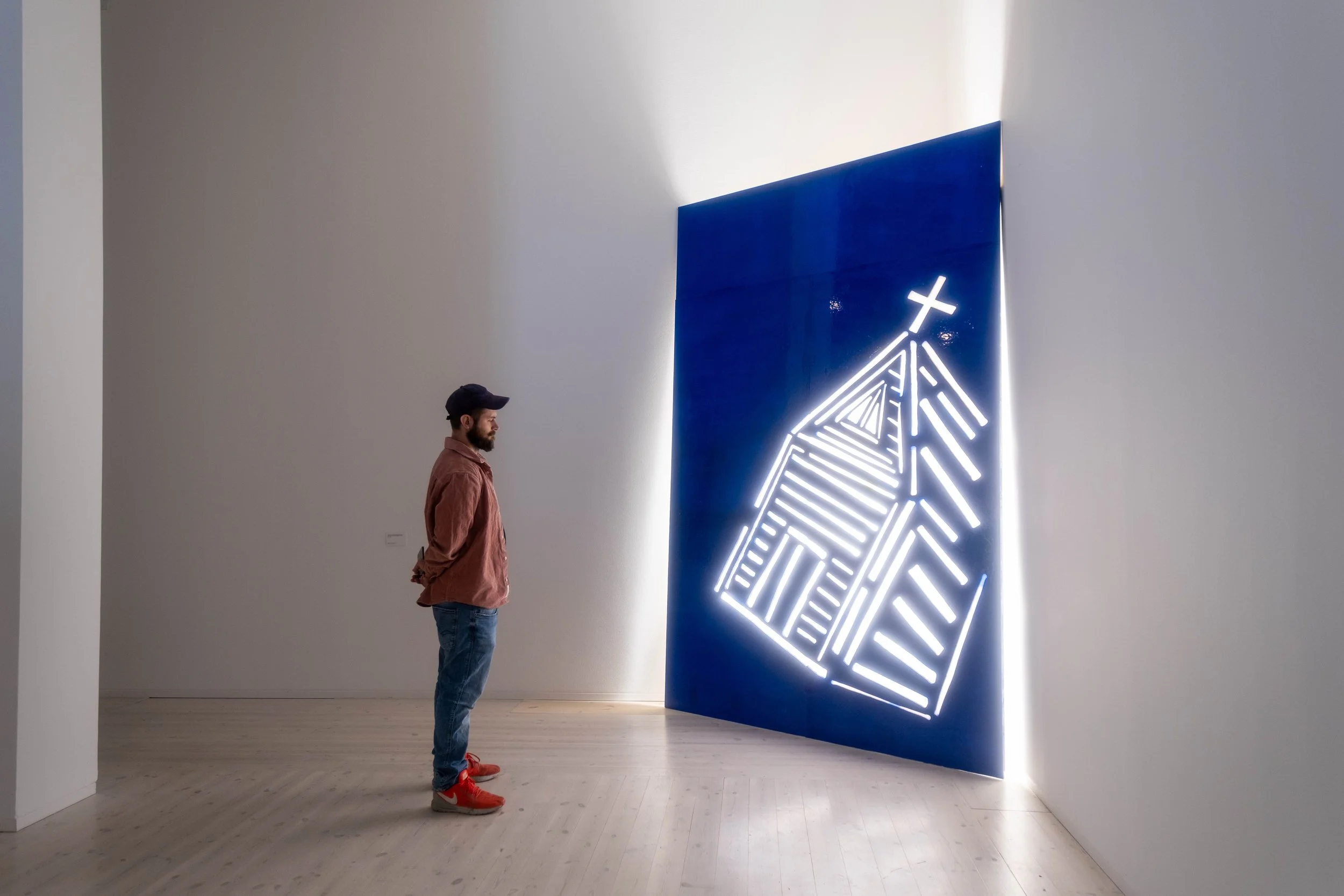 MDF wood, epoxy resin, pigment, LED lamps, plexiglass